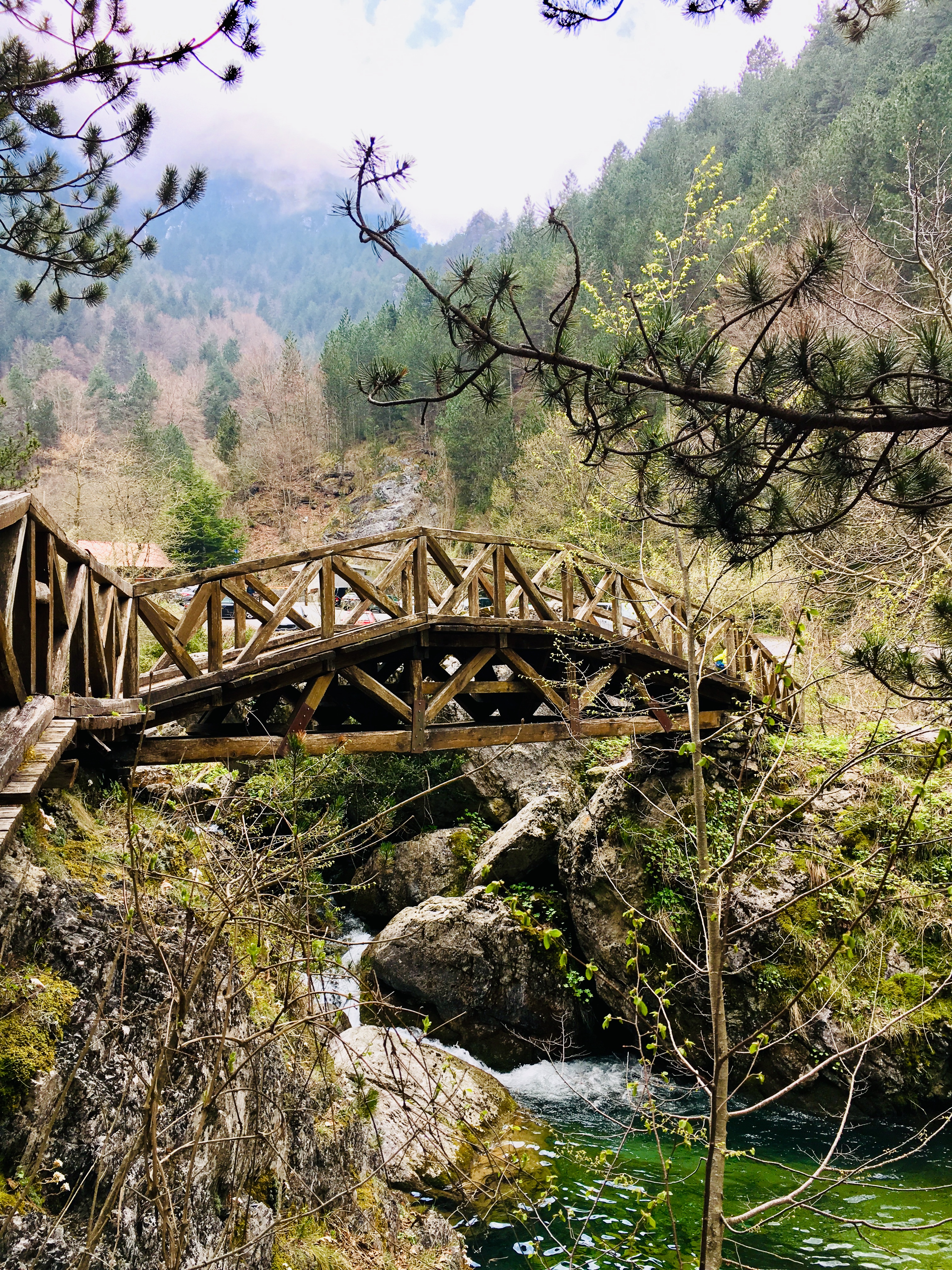 We drove to Prionia passing through Litochoro. From Parking we walked to the waterfall and walked back to the wooden bridge near the parking.